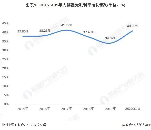 2015-2019年KOK官方版网站登录入口毛利率整体在35%以上水平,2019年略有下降,主要是受产品销售结构及市场竞争加剧的影响,导致公司综合毛利率较2018年度下降约3.46个百分点;但是2020年前三季度上升为40.88%。