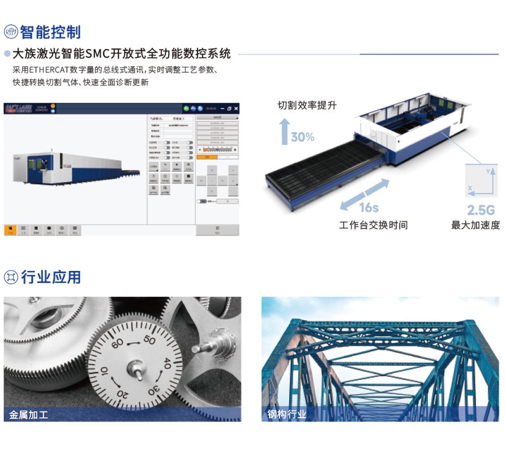 设备高动态性能驱动充分发挥激光器切割速度,一再打破板材厚度极限,将加工效率提升至新境界