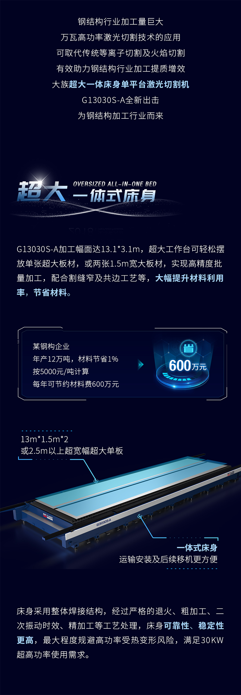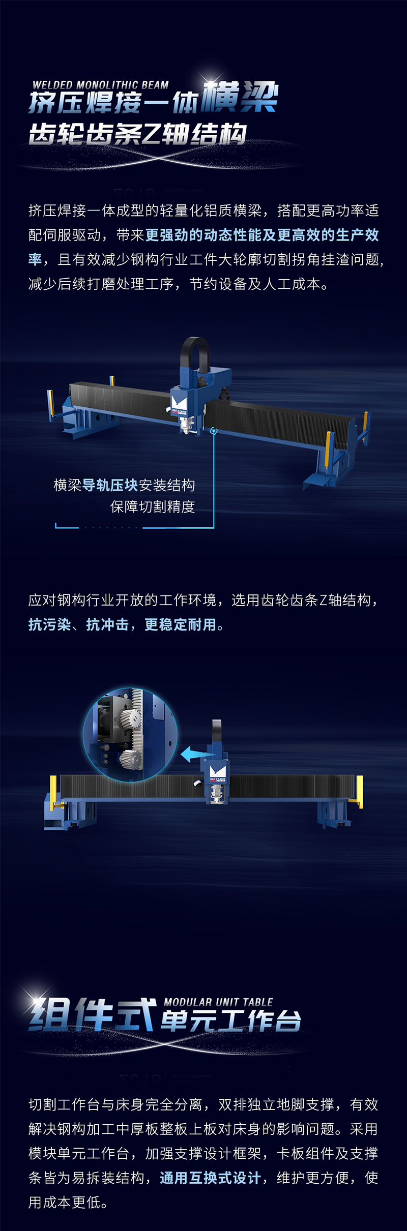 HF系列光纤激光切割机最大程度地发挥数千瓦乃至上万瓦光纤激光器的切割速度,为您提供最高效的薄、中、厚板加工解决方案。